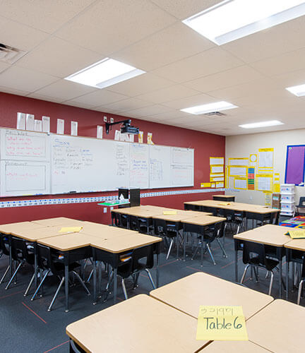 AP recently rolled out the red carpet to welcome Academy of Math and Science (AMS) Peoria Advanced K-7 students to their new 48,000 sf school. AP’s scope included the modernization and addition to a 8.5 acre campus. With over 18,500 sf of new space for administration and classrooms, the school can accommodate up to 900 students and will include K-8 in the 2020-2021 school year. The remaining 30,000 sf was the renovation of the existing modular buildings, multi-purpose room, science lab and music room. The project site had improvements as well, including a new playground and full turf field.