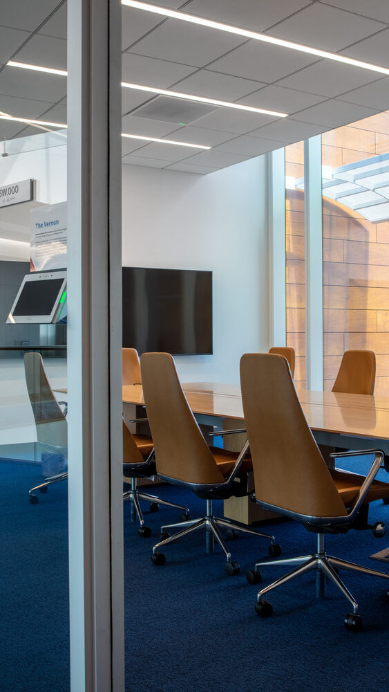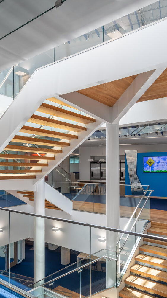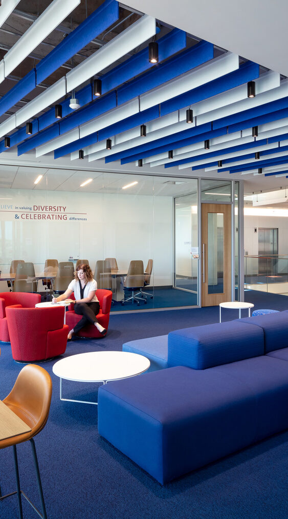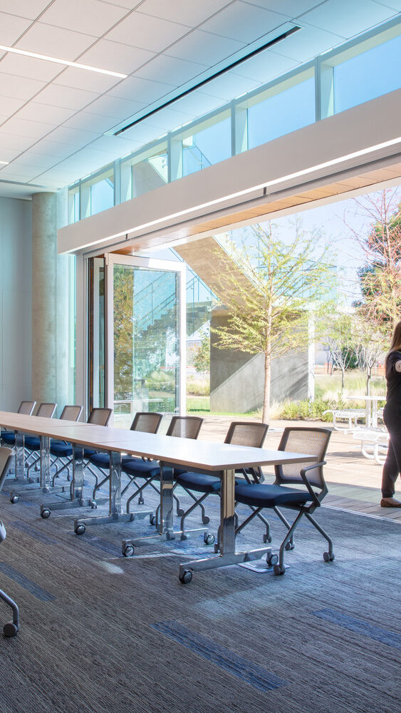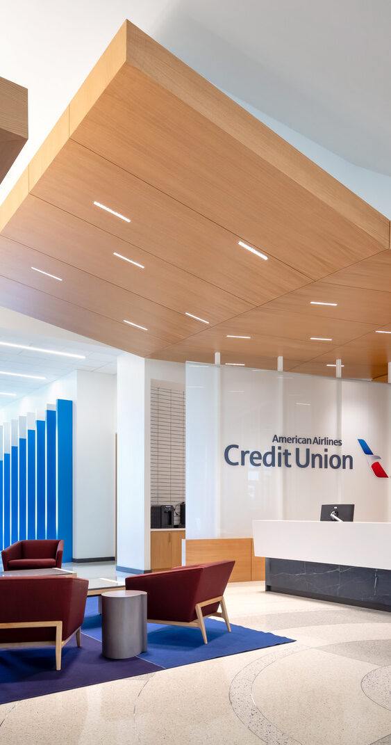 The headquarters for American Airlines Credit Union is a five story, 164,200 square foot Class A office building designed to support approximately 780 employees in Fort Worth. Developed as a key gateway building within the organization’s corporate campus, the facility reflects a strong commitment to sustainability, operational efficiency, and employee wellness. The project achieved LEED Gold certification and received a Merit Award in the 2020 ENR Texas & Louisiana Best Projects program. The building features a full service credit union branch along with a mix of open and private offices, boardrooms, training rooms with operable partitions, conference rooms, and numerous collaboration areas.