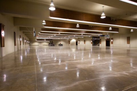The structure is post-tensioned cast-in-place concrete. The exterior finishes included perforated metal panels with an accent swoop which will be backlit. The elevator structure is cast-in-place colored concrete with a sandblast finish.