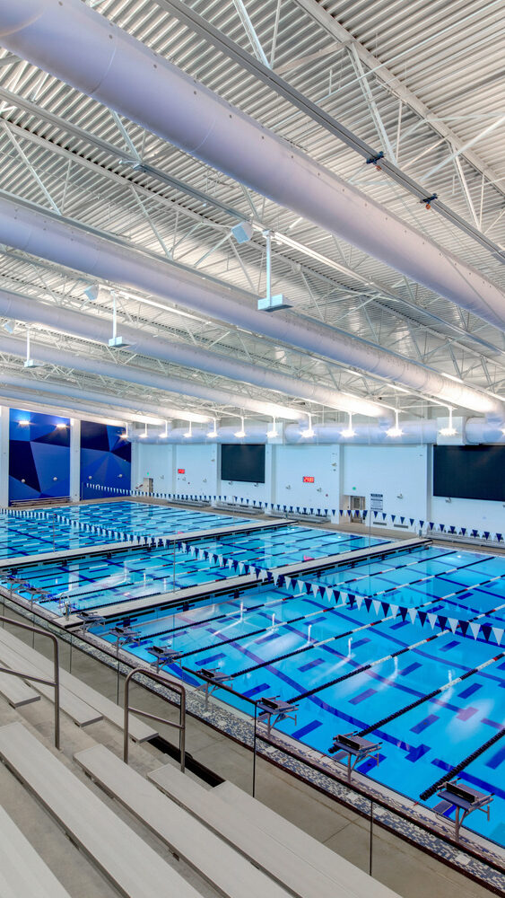 The district’s Athletics Complex includes a gymnasium, a 13,500 sf Natatorium with an Olympic size Myrtha competition pool, and a 2,500 sf Myrtha warm up pool. These facilities will enable Arlington ISD to provide competition and practice venues for sports that currently lack adequate space at high school campuses.