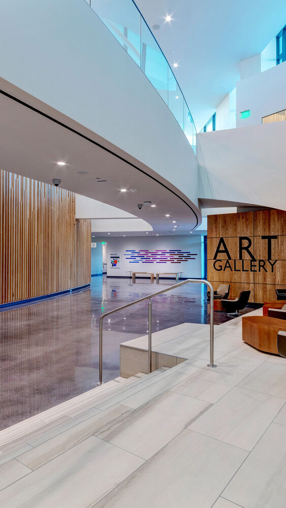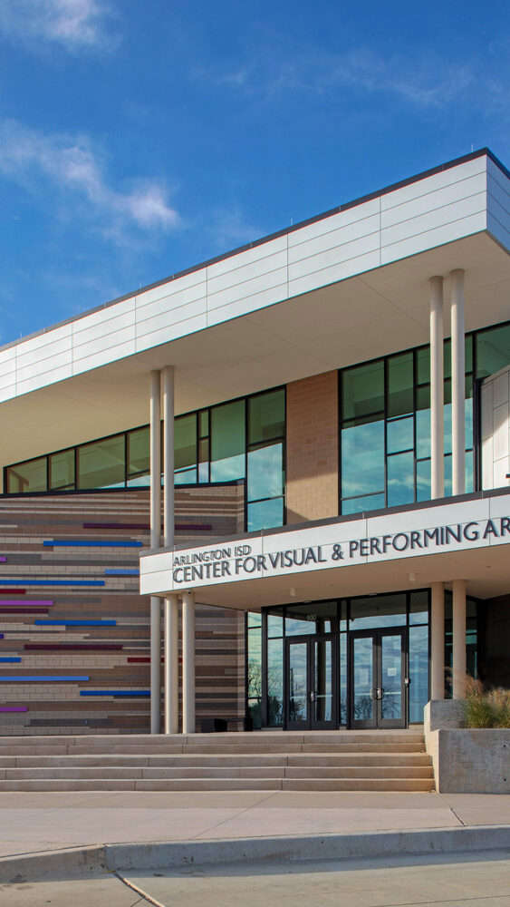 The Arlington ISD (AISD) Arts and Athletics Complex is a state of the art facility on more than 21 acres, that serves the district’s entire student body, grades pre kindergarten through 12. The new 97,963 sf Center for Visual and Performing Arts, a world class performance and demonstration venue, features a 1,250 seat concert hall, 425 seat theater, art and dance studios, and an instrument repair center. The facility also includes an academic wing and student courtyard, as well as an art gallery next to the main lobby.