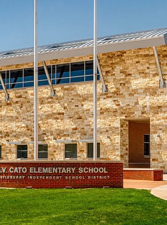 The new A.V. Cato Elementary School has a core capacity of 900, serving grades prekindergarten through 5. The building program includes: Classrooms for grades 1 through 5, Classrooms with internal single occupancy restrooms for pre-k and kindergarten, Special education classrooms and support spaces, Specific classrooms and support spaces for art, music, and science, Computer labs, Physical education instruction facilities including gymnasium, office, storage, and restrooms, Library including library furniture; office, workroom and storage, Food service, including food preparation and serving, cafetorium with stage and storage, Service and support spaces, including corridors, lobbies, mechanical, electrical, data hub, and fire sprinkler rooms; restrooms, storage, and custodial spaces.