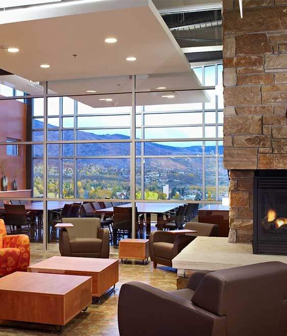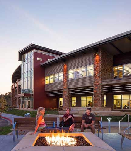 This majestic multi-purpose academic and administrative center serves as the center piece of the College. Carefully integrated into the side of a steep slope, this state-of-the-art building configured over three stories presents technologically advanced classroom space, auditoriums and student gathering components, as well as many of the offices and services required for campus administration. The heart of the design is an expansive glass curtain wall and outdoor patio environment combining sweeping views with regionally appropriate building materials to create a sense of place and pride. The scope of work included the addition of a public road and related public utility improvements further connecting the new facility to the surrounding municipal interests.