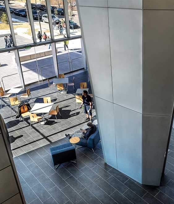 This project furthers Colorado School of Mines’ position as a global leader with a unique breadth of industry expertise. Marquez Hall features customized classrooms and research and teaching laboratories; smart classrooms equipped with wireless networking and interactive audio-visual technology; a multi-purpose visualization classroom to support interdisciplinary collaboration between Petroleum Engineering, Geology and Geophysics; capacity for increased faculty research activity and enrollment of up to 400 students; offices and meeting space designed to enhance interaction between students and faculty as well as research teams and informational displays that will educate campus visitors about the petroleum industry.