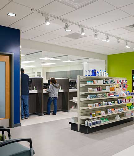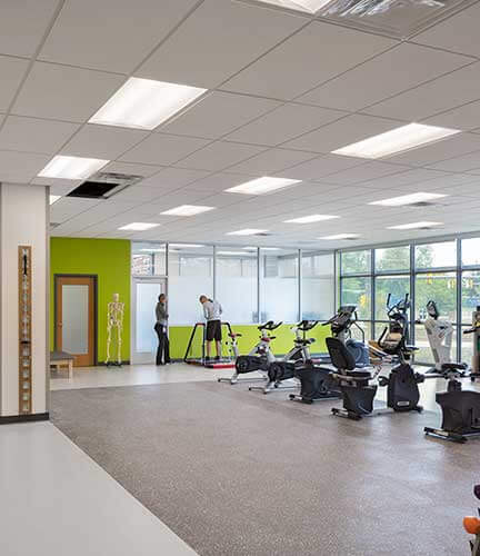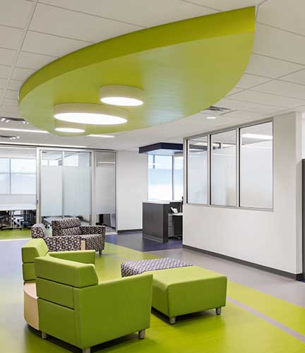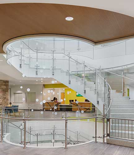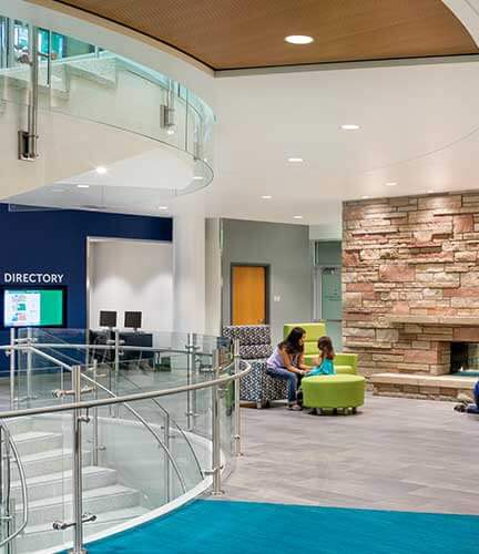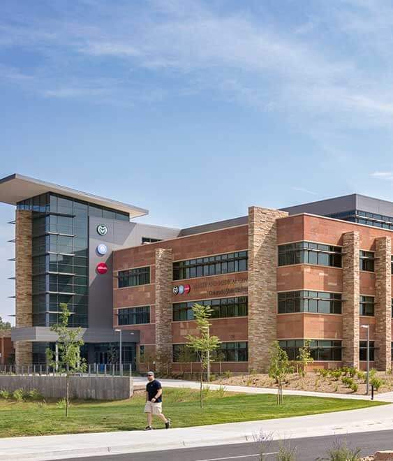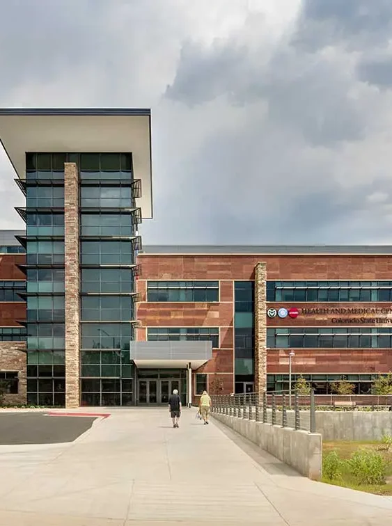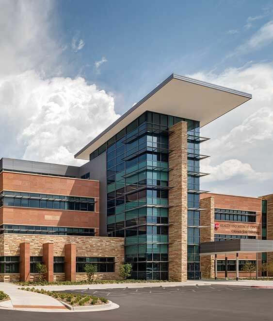 Sitting on the northwest corner of South College Avenue and West Prospect Road, the 161,200-sf, four-story building stands as a prominent new gateway to the campus, while consolidating the University’s health care services into one location. The building also houses a University of Colorado Health walk-in clinic, the Kendall Anderson Nutrition Center, and an occupational health services clinic alongside a full service pharmacy on the first floor, all of which are open to the general public. In addition, the Columbine Health Systems Center for Healthy Aging has space in the facility for research, education, and outreach.