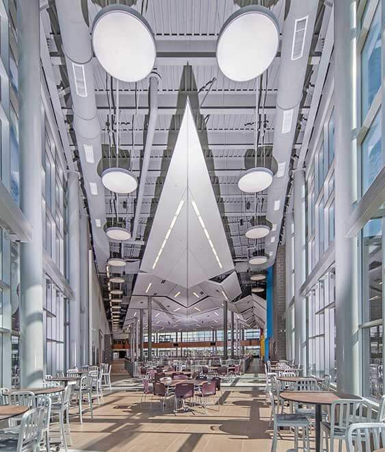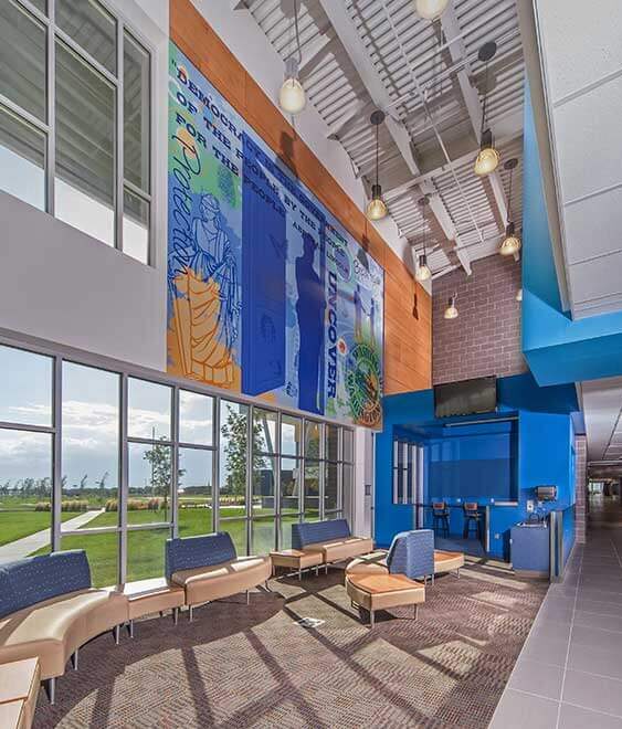 Unified by an expansive common area designed to be anything but common, and cyber cafes meant to foster a special sense of place, this state-of-the-art facility marks a dynamic shift in the District’s and community’s approach to preparing their students for 21st-Century challenges. Students are exposed to machinery and technology many would have never had the chance to experience outside of a college atmosphere.