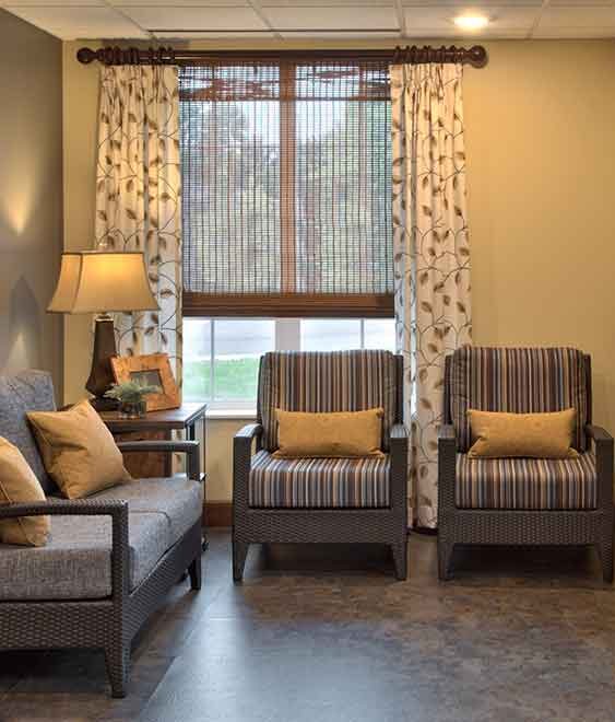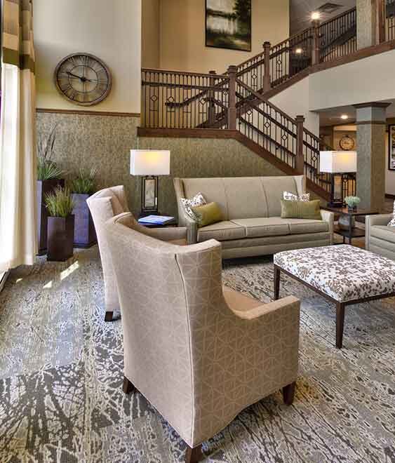 The redeveloped and expanded main campus and care center moved west of the Rum River and added 50 more senior apartments and 20 assisted living suites. The care center serves up to 141 long-term residents, including memory care residents. The care center floor plan is designed in a home-like setting to accommodate Liberty Personally Designed Living™. At the heart of the campus is GracePointe Crossing’s Town Center with amenities such as a bistro, wellness center, chapel/auditorium, salon and theater. The Town Center serves to connect living options to consolidate amenities and services and enrich community life.