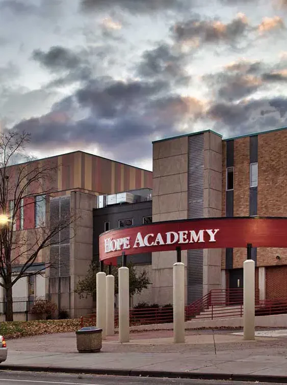 Hope Academy is a faith based, private K-12 school serving inner city youth. The school is in an old hospital that requires considerable renovation to create spaces that better suit an educational environment. Phase two of the remodel included, a new gym, remodel of art and music classrooms and a new Family Ministry Center and offices for Admission and Advancement.