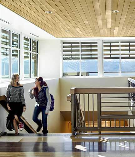 The 61,000-sf expansion included adding a two-story high school wing and a one-story junior high school wing, which allowed the district to move 7th and 8th grades from the overcrowded middle school. Existing portions of the building that remained were dressed up with new exterior skin and an entry tower with a secured vestibule at the east side of existing building, to replace the existing main entry.