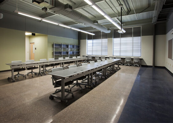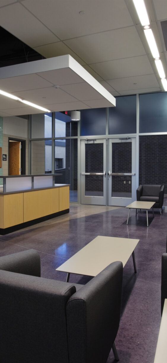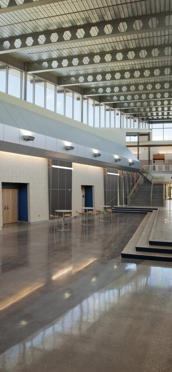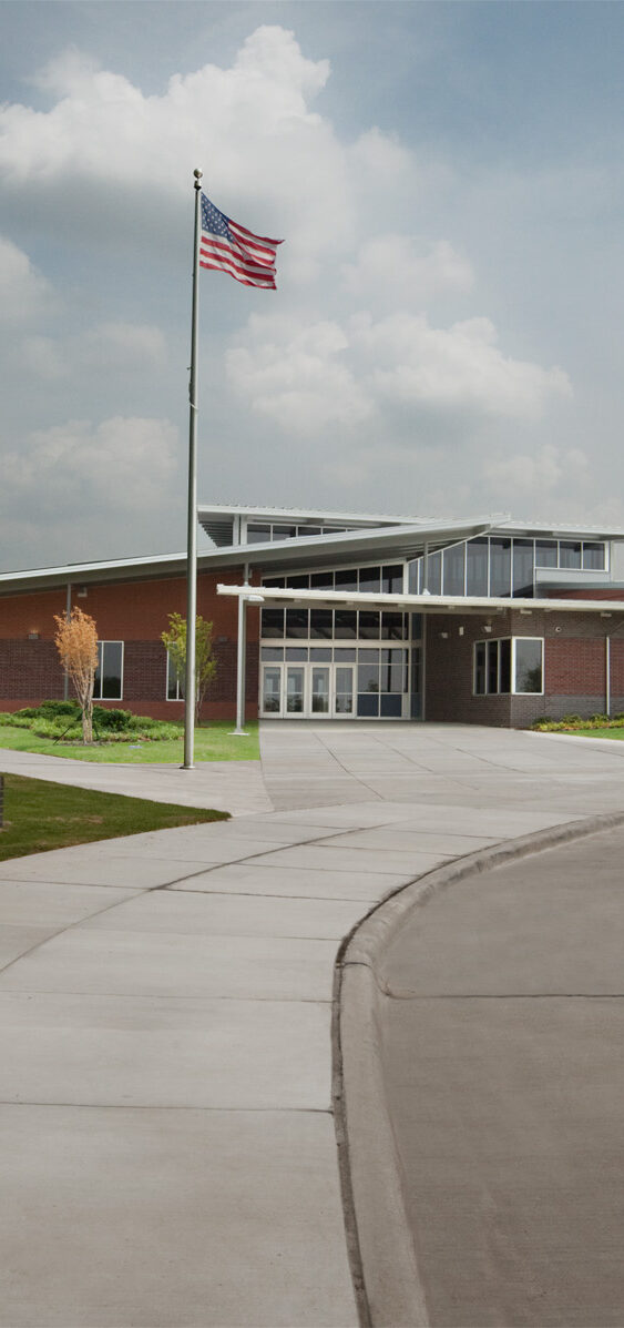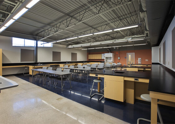 The building features a wide range of instructional spaces, including vocational training areas, an auto shop, science labs, classrooms, a salon and cosmetology suite, computer labs, a media tech lab, CSI lab, photo studio, auditorium, TV studio, and administrative offices. Constructed with a durable steel and block structure, brick veneer, and metal roofing, the facility was designed to support a variety of established programs as well as emerging technology-based courses.