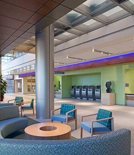 This state-of-the-art medical center is the client’s largest facility in Colorado. The building blends interior and exterior spaces through a combination of glazing materials to create a warm and welcoming experience for users and visitors in a highly sustainable facility. This 275,376 sf, $86.4 million medical office building was designed and constructed as the client’s signature facility after more than 40 years in the Colorado market. The finished facility, a stunning masterwork of elegant form and efficient function, presents the client’s members, staff and visitors with a reaffirming vision of 21st century healthcare.