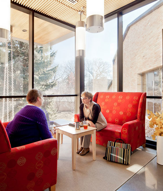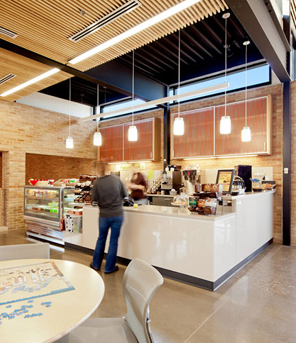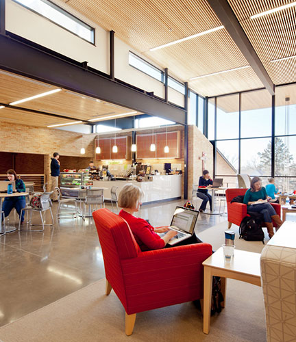 Originally built in 1983, the center has served as the campus’ chapel, dining hall and general campus center. Construction included enclosing the second floor outside commons, creating year-round gathering space including a coffee shop, executive dining area and administrative offices. Renovations included the lower level bookstore, lecture and classroom space and a new front entrance. The renovated Olson Campus Center aligns with Luther Seminary’s mission to prepare the type of leaders the church needs most. The sense of community on campus is strengthened with the addition of classrooms and space dedicated to fellowship of students, faculty, staff and friends. It fosters an engaging environment that supports a new model of learning, which goes beyond the classroom setting.