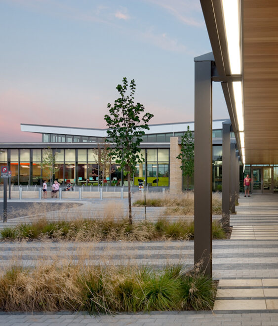 This project showcases a vaulted ceiling, sustainable features, a seasonal reading porch and a variety of seating and meeting spaces. Specific library features, include: art at the library, expanded collections, more public computers and building-wide wireless access, interactive features for early childhood literacy, expanded and enhanced children’s area, language collections, teen zone, and meeting rooms. Designed with the future in mind, the facility also includes a three-level, 356-stall parking ramp and the latest environmentally friendly trends.