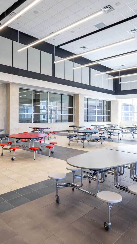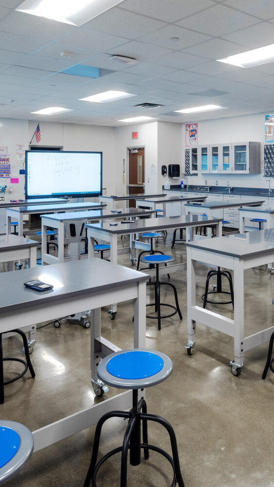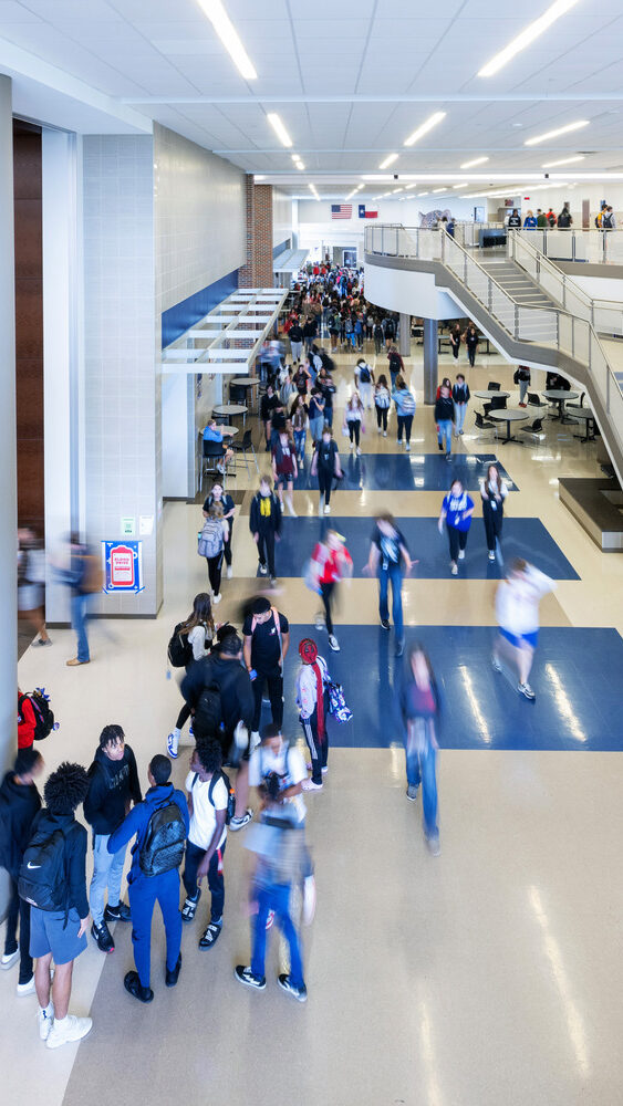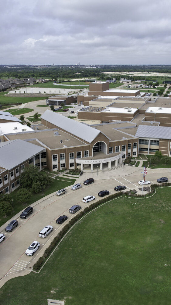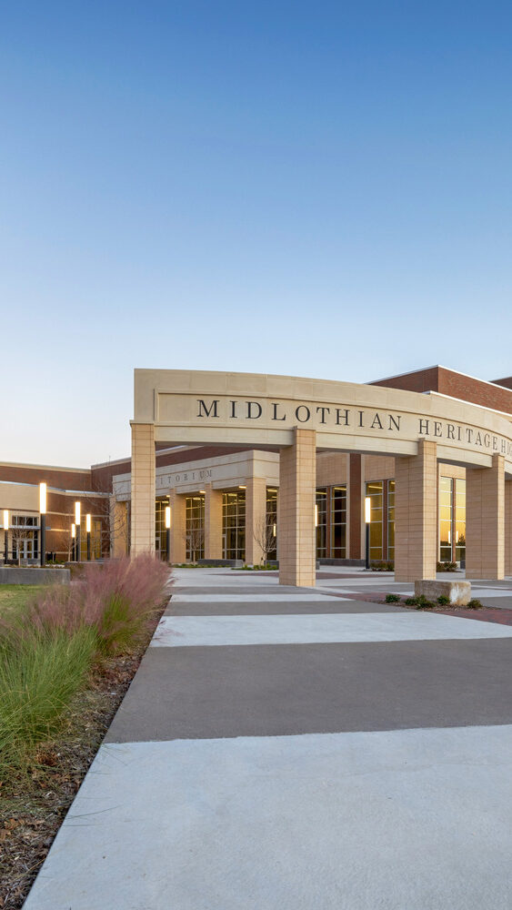 Renovations and additions to Midlothian ISD’s Heritage High School transformed the campus into a modern, future-focused learning environment designed to support the district’s growing student population. The project included a 185,000-square-foot addition featuring a new two-story classroom wing with science labs, a storm shelter integrated within a new drill and competition gym, and significant expansions to Fine Arts, athletics, and student support spaces.