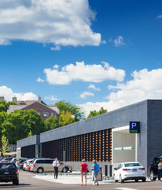 The Mill Street Parking Structure is a 385 stall, 93,700 sf parking structure for the City of Wayzata. A cast-in-place post-tensioned concrete structure supports the second floor parking. A 15,000–sf earth drilled/dropped lagging wall with helical tie-backs (engineered for placement at steep angles to stay within the tight property limits) envelops the north half of the site. The wall is waterproofed and has a cast-in-place concrete face wall with reveals and staining to further add artistic flair. Another innovative aspect to this project is the stormwater retention system which includes large diameter piping located underground adjacent to the structure to control drainage. Many residents have complimented the City’s new parking ramp with its “handsome looks” that provide both functional and aesthetic value to the neighborhood.