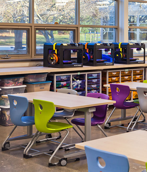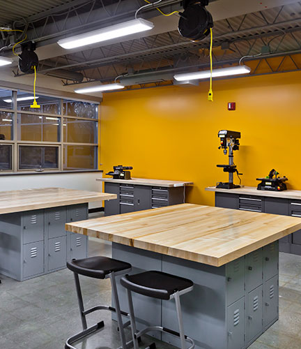This project consists of converting approximately 2,000-sf of classroom space into a new makerspace. A makerspace is a place where students gather to create, invent and learn. These spaces often have 3D printers, software, electronics, crafts and hardware supplies, tools and more. The makerspace project is the first in a series of projects which AP worked with the client to price the entire master plan.