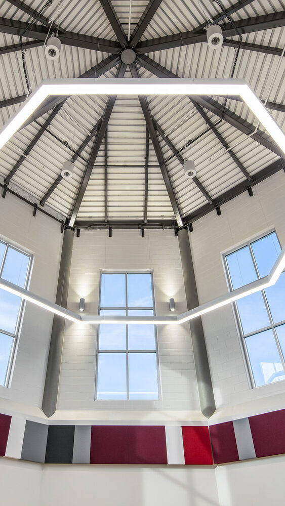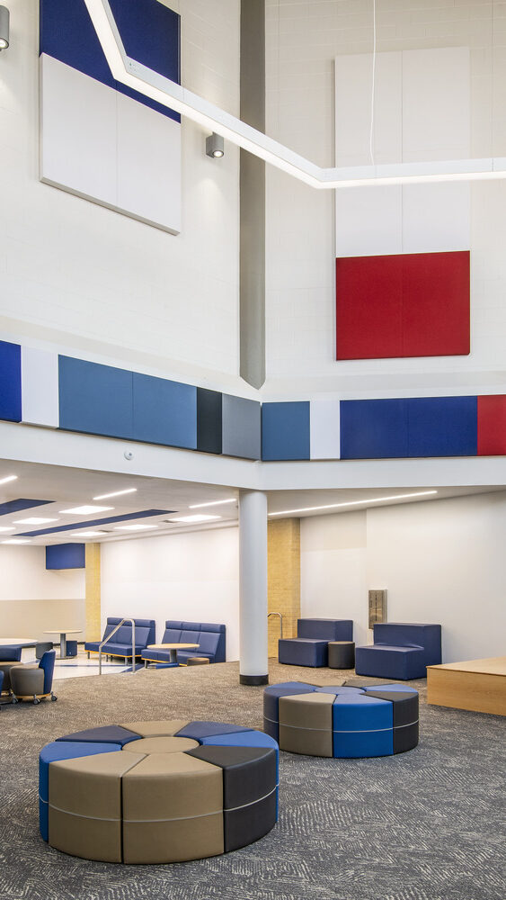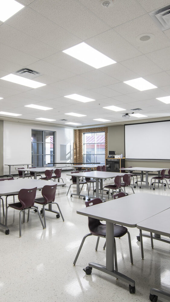 The new addition features a three-story, cast-in-place structure that seamlessly connects to the existing Career and Technology building, originally constructed in the 1940s. Renovations to this historic facility, along with updates to the administration areas, modernized the campus while preserving its legacy.