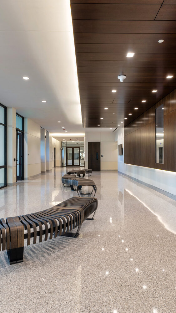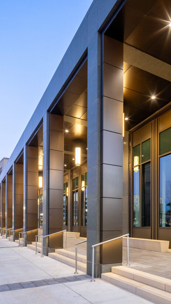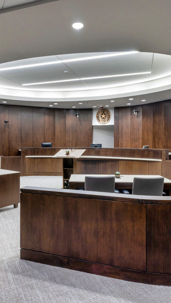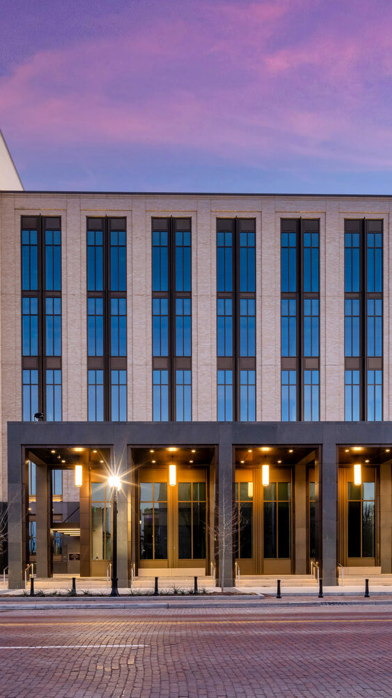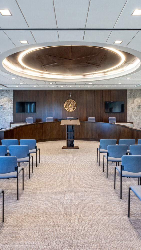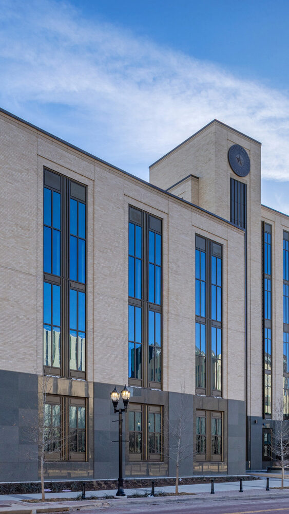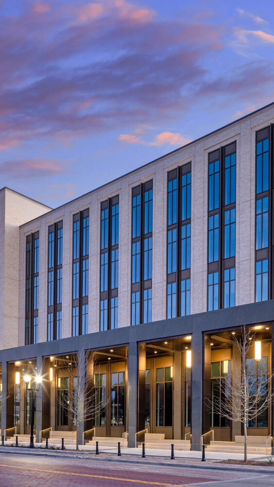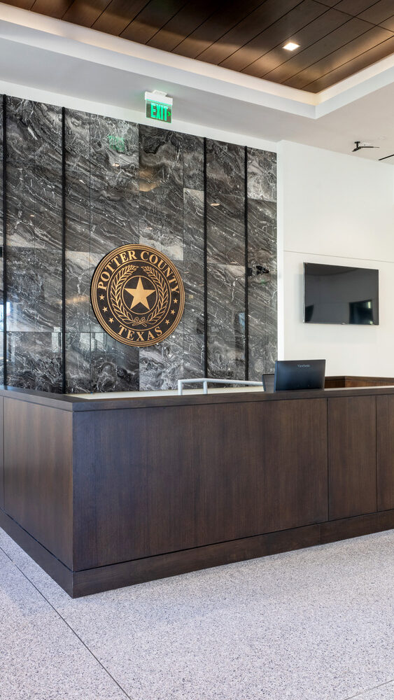The new District Courthouse for Potter County replaces the county’s previous 35-year-old facility with a modern, five-story courthouse totaling approximately 158,000 square feet in Amarillo. The building includes courtrooms, jury assembly areas, in-custody holding, county offices, and records storage, with carefully planned circulation that separates public access from secure sheriff, judicial, and staff areas.