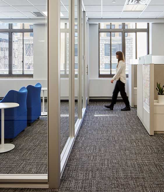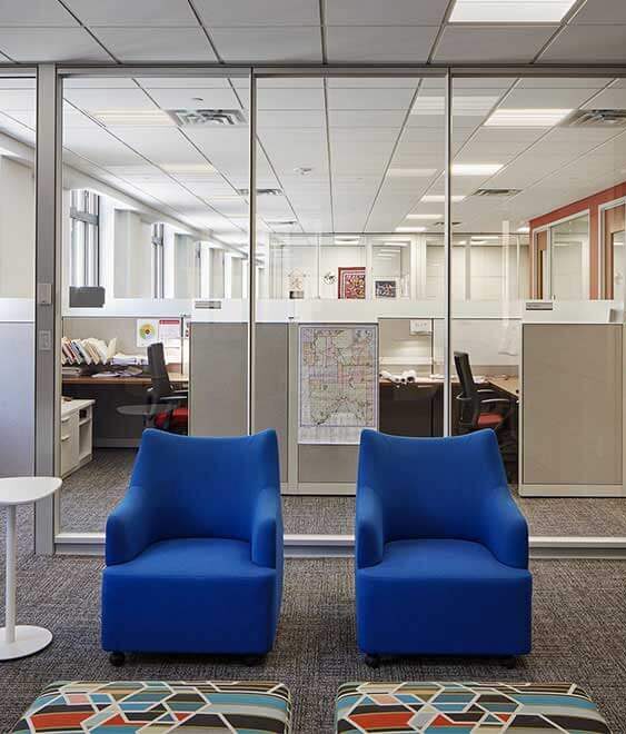 AP renovated the Ramsey County Manager’s Office, located in the historic 1930’s Ramsey County Court House/St. Paul City Hall Building in downtown St. Paul. The project included updating the 16,000-sf space to better suit modern work styles, featuring huddle and phone rooms, and a large conference room. The workspace is now more collaborative and team-focused. By utilizing DIRTT demountable wall systems with integrated technology, Ramsey County now has a professional space with options for future flexibility. AP needed to preserve, protect and restore historic elements in the space. Our team carefully planned for work in the occupied courthouse, with regular interactions with the building representatives.