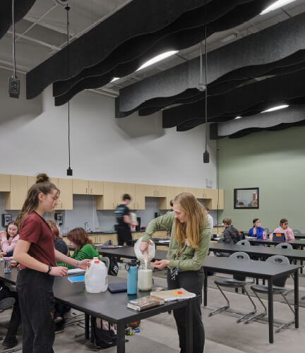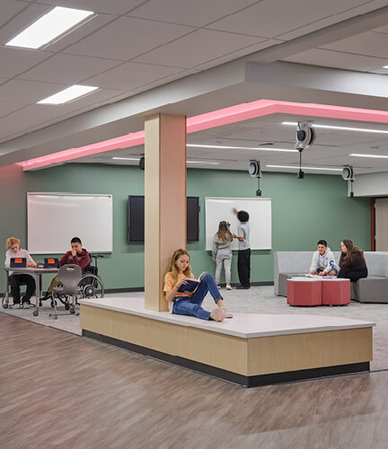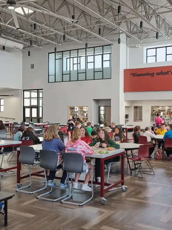 This project transformed the former Roosevelt High School into Roosevelt Middle School, a modern facility serving grades 6–8. The transformation included demolition of the central core and construction of a new 20,000-square-foot addition featuring a kitchen and cafeteria/commons, administration wing, and CTE classrooms. The addition connects three existing wings. Renovations covered 100,000 square feet, upgrading classrooms, CTE spaces, and mechanical and electrical systems. Improvements also included building envelope enhancements and refreshed hardscape and landscape elements. The result is a revitalized campus that supports contemporary learning while preserving key elements of the original structure.