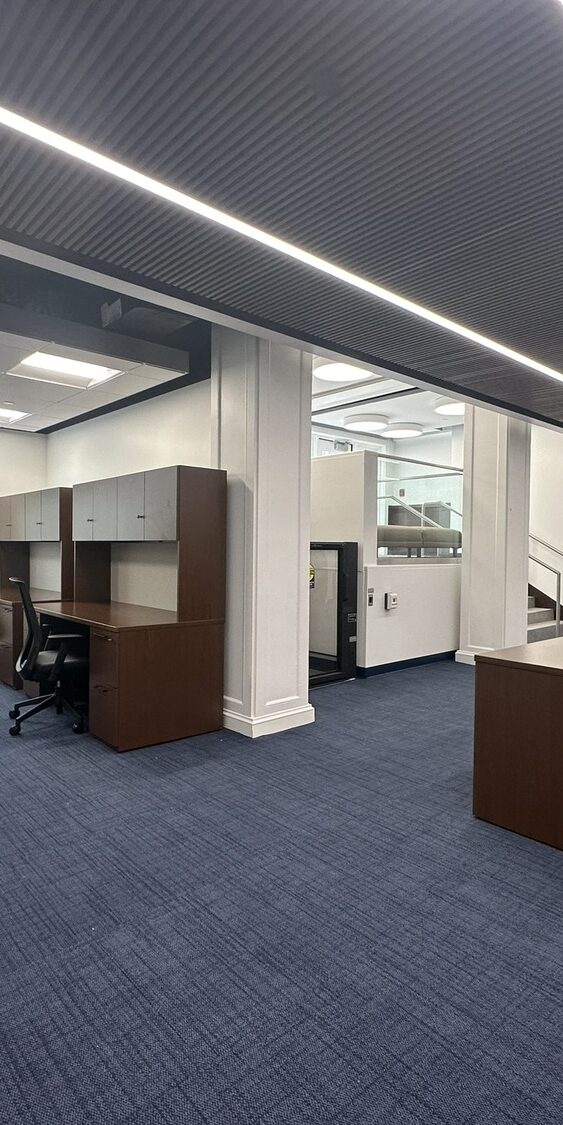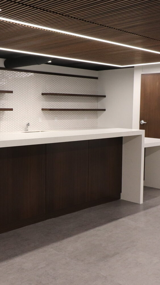 The renovation included high-end interior finishes such as decorative metal panels, custom millwork, quartz countertops, wood paneling, linear wood ceiling systems, and a glass railing feature. Additional upgrades included new flooring, tile, paint, doors, and integrated appliances, creating a cohesive and contemporary space.