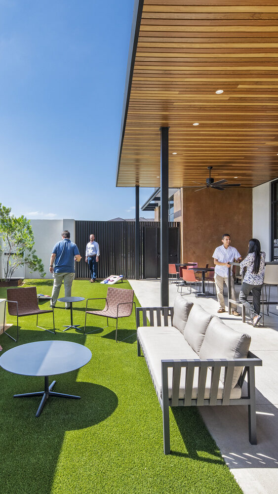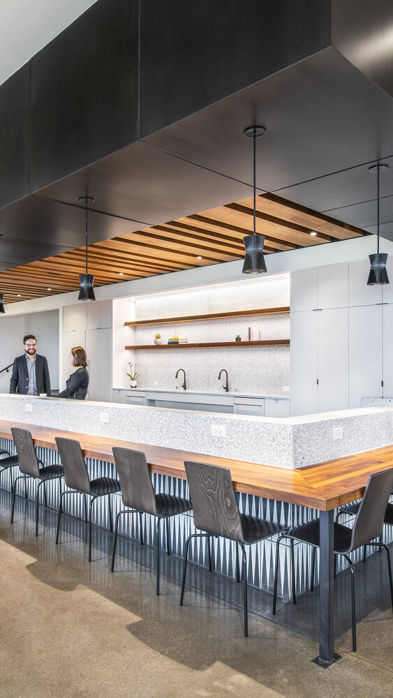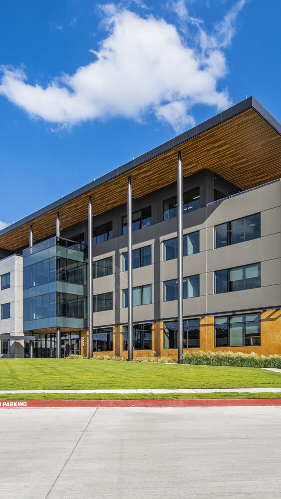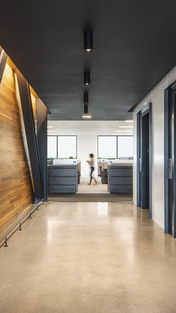 Initially awarded for sitework, building, and garage construction, AP’s scope later expanded to include the interior finish-out. The interior spaces feature high-end office finishes, custom millwork, and metal panel applications, while balconies and terraces are finished with pedestal paver systems and premium glass railings.