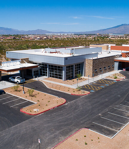 This micro-hospital serves both the 24-hour needs of an emergency facility and local surgery outpatient center conveniently located near Interstate-10 in Tucson, AZ. The 32,500-sf hospital includes a 12-bed emergency department, an operating room, eight inpatient rooms. The facility includes surgery areas for lower acuity inpatient procedures, diagnostic imaging, a laboratory and a pharmacy.