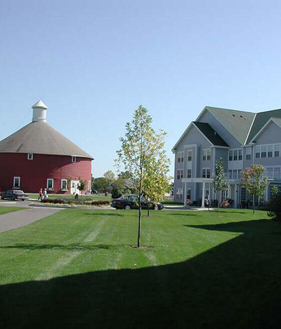 The Farmstead is a 198,000-sf, 140-unit senior living community offering independent living, assisted living, and memory care apartment homes. This exciting community features a beauty salon/barber shop, chapel, community room, convenience store, game room, gardens, library, walking trails, restaurant dining and a wellness center. Once the Adolfson family farm, this property still retains the original round barn and a large pond.