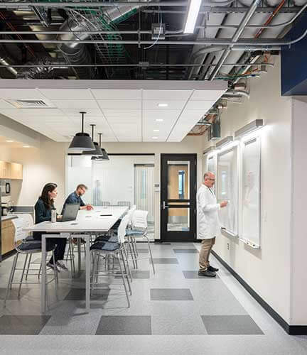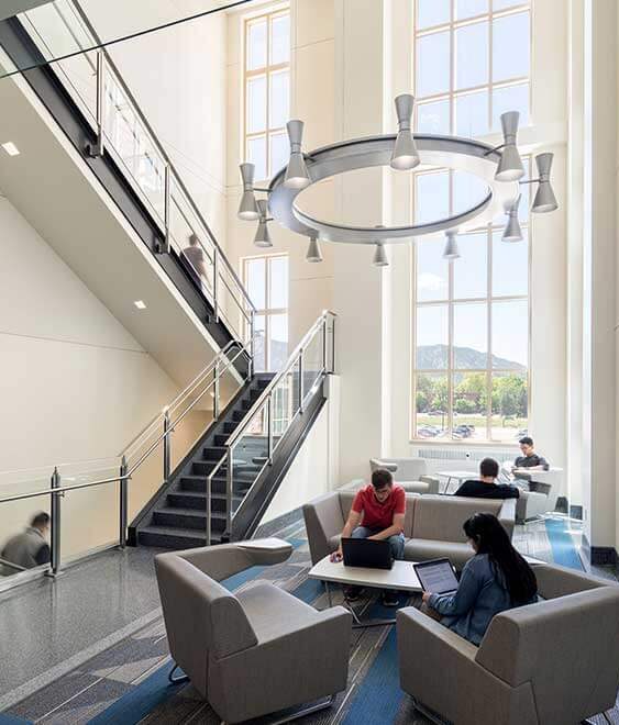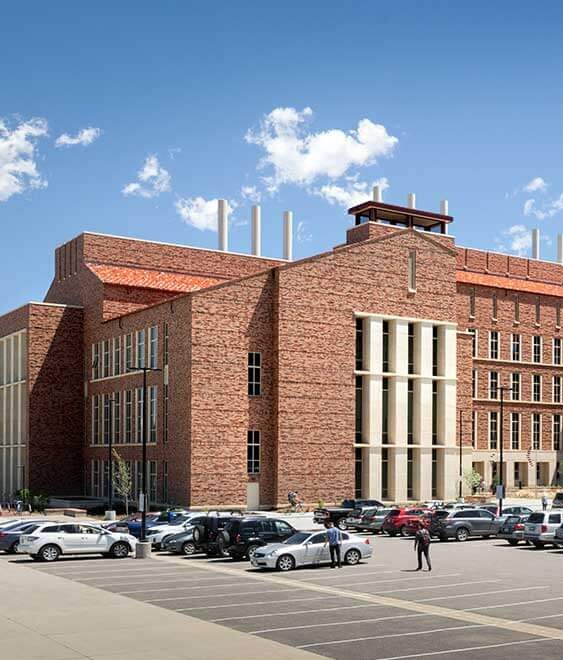 This addition located on the East Campus of CU Boulder offers state-of-the-art teaching and research laboratories and classrooms to support current and future interdisciplinary programs for the BioFrontiers Institute, the Department of Chemical and Biological Engineering and the Division of Biochemistry. This highly sensitive, 57,500-sf, three-level addition with a fourth-level mechanical room was built using cast-in-place concrete to meet the minimal vibration standards for a lab research building with sensitive equipment. Seismic monitors were located throughout the existing building’s labs to manage any impacts during construction so that research could continue without interruption. The original contract was core and shell and included the new and renovated connector space, new entrances, academic classrooms, conference rooms and bathrooms.