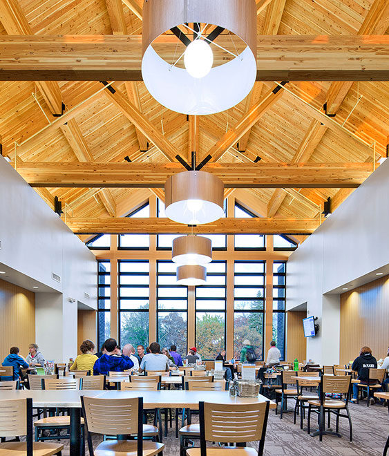 The Billy Graham Community Life Commons building serves as the signature campus centerpiece and accommodates thousands of students at the college. Located on a former seminary and preparatory school campus, the Community Life Commons features a dining facility, campus store, classrooms, study lounges and meeting spaces. The center also includes an expanded outdoor campus green to provide students, faculty, staff, alumni and guests a vibrant community gathering space. The facility is intended to create abundant designated space for people to connect and build relationships.