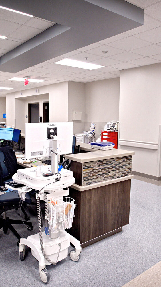 AP Construction provided general contracting services for a new, one-story, 28,750-square-foot freestanding general hospital with an emergency department. The facility was designed to deliver efficient, high-quality patient care and includes eight patient rooms, a triage room, eleven exam rooms, and a full imaging department with CT and X-ray capabilities. Additional spaces include clinical support areas, a pharmacy, laboratory, staff locker rooms, materials management, and staff kitchen and lounge areas.
