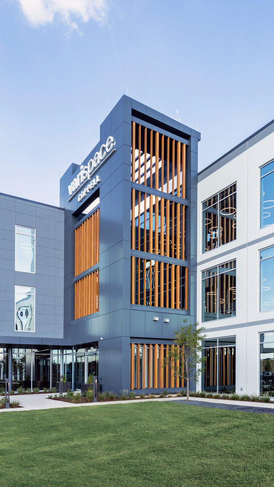 AP Construction delivered VariSpace Coppell, a three-story, 180,000-square-foot Class A office building situated on a 10-acre site in Coppell, Texas, along with a two-story, 262-space parking garage. Designed by BOKA Powell (core and shell) and Corgan (interiors), the project serves as the global headquarters for Vari and sets a new standard for flexible, human-centric work environments.