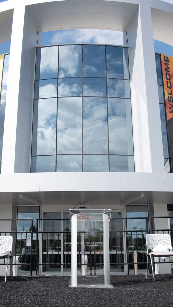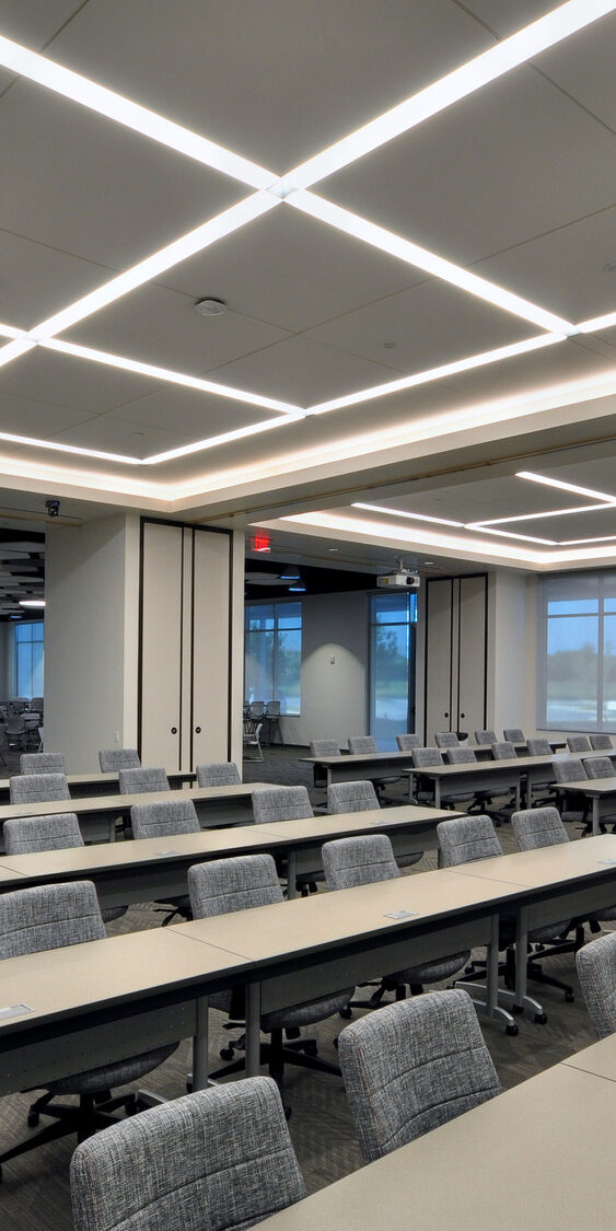 The fully built-out facility integrates advanced technical, manufacturing, and collaborative spaces under one roof. A state-of-the-art engineering laboratory includes a large anechoic chamber, a full environmental test chamber for accelerated life testing, 24 electrical test benches, and a fully equipped prototype shop. On the first floor, a sophisticated manufacturing area supports the assembly of WatchGuard Video’s in-car and body-worn cameras, bringing engineering, production, and testing together in a highly integrated environment. The headquarters also features a large training facility, a vehicle installation garage with an officer’s lounge, a customer demonstration room, and a dedicated engineering wing.