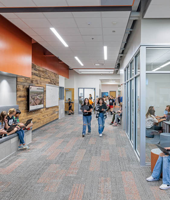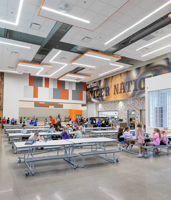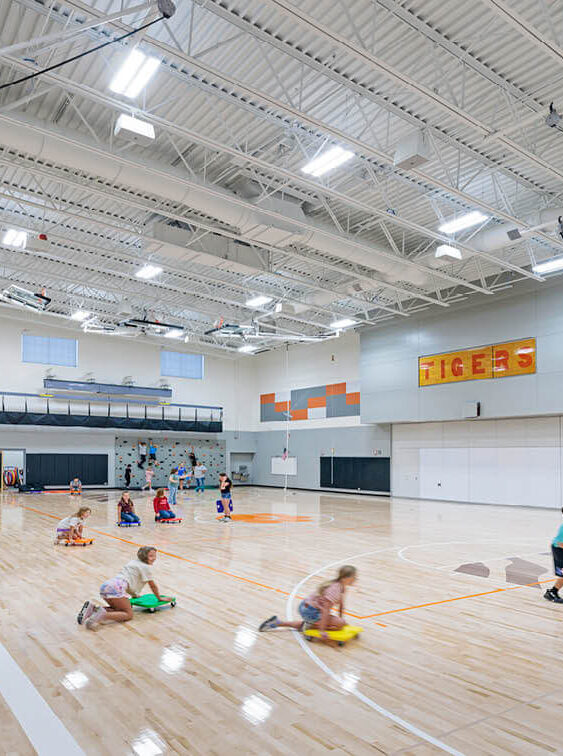 Wiggins School District wanted to improve the existing campuses so that students could be part of school activities in a unified environment. The building for 4th through 6th grades features a gymnasium, an airy cafeteria, and STEM/art room. The large spaces are an opportunity to bring the ever-growing community together. The new building incorporates multiple learning opportunities including small group and collaborative learning spaces. As part of this project, RTU units were replaced, and the fire protection system was upgraded throughout the existing school. Another small addition was also added for the preschool. Since the new building now offers an art space, the old space was renovated to provide a home economics room and small engine shop to enhance learning opportunities.