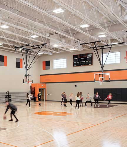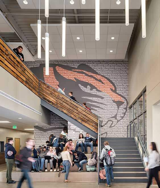 The 56,450-sf expansion provide a new middle and high school for the rural Wiggins community. The project includes minor renovations to the elementary school and existing weight room, as well as the event center, which connects to the new addition. The new school is energy-efficient, code-compliant, safer and more educationally suitable for the Wiggins students and staff. Project highlights include an expanded parking area, a 250-seat auxiliary gym, a wrestling room, an agriculture education shop, a 350-seat theater and 18 new classrooms. Outside the facility is a new track surface and events area surrounding a new football field that meets Colorado High School Activities Association (CHSAA) regulations.